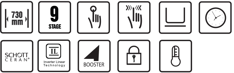 | Các chức năng an toàn | • Chức năng cảm ứng chống tràn • Chức năng cảnh báo nhiệt dư cho từng vùng nấu • Chức năng tự động tắt bếp khi nhấc nồi khỏi vùng nấu • Chức năng khóa trẻ em an toàn |