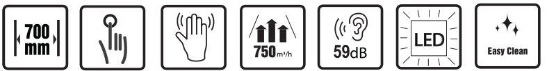 | • Kiểu dáng : Phẳng • Chất liệu: Inox xước sáng bóng • Chức năng lọc bằng than hoạt tính • Lỗ thoát khí : Ø15cm • Loại mô tơ: 210 W • Độ ồn khi hoạt động tối đa: 59 dB • Hiệu suất hút không khí tối đa : 750m3/h • Công nghệ Air sensor - cảm ứng vẫy tay • Hệ thống chiếu sáng: 02 Đèn LED x 1,5W chuyển đổi riêng biệt. • Hệ thống điều khiển: Màn hình LCD cảm ứng • Hệ thống lọc: Màng lọc hợp kim nhôm