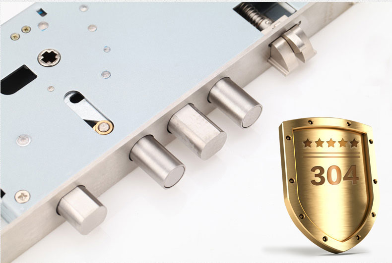 - Bộ phận chuyển động thân khóa sử dụng chất liệu Inox 304 đúng chống han gỉ.