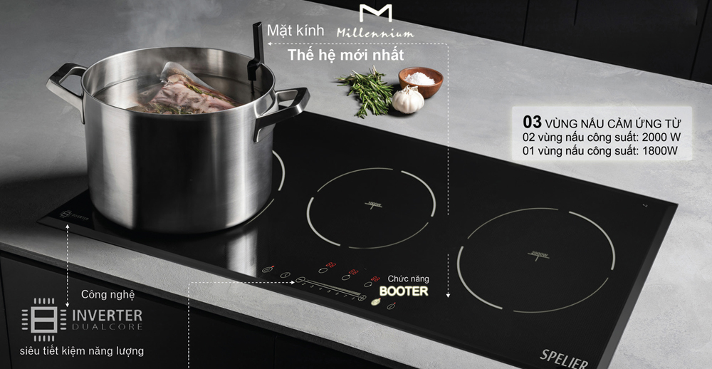 • 02 vùng nấu cảm ứng từ lớn công suất: 2000 W |