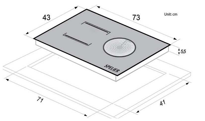 ![]() | • Điện áp 220-240V/ 50-60Hz • Kích thước bếp (D x R x C): 73 x 43 x 5,5 cm • Kích thước khoét đá (D x R): 71 x 41 cm |